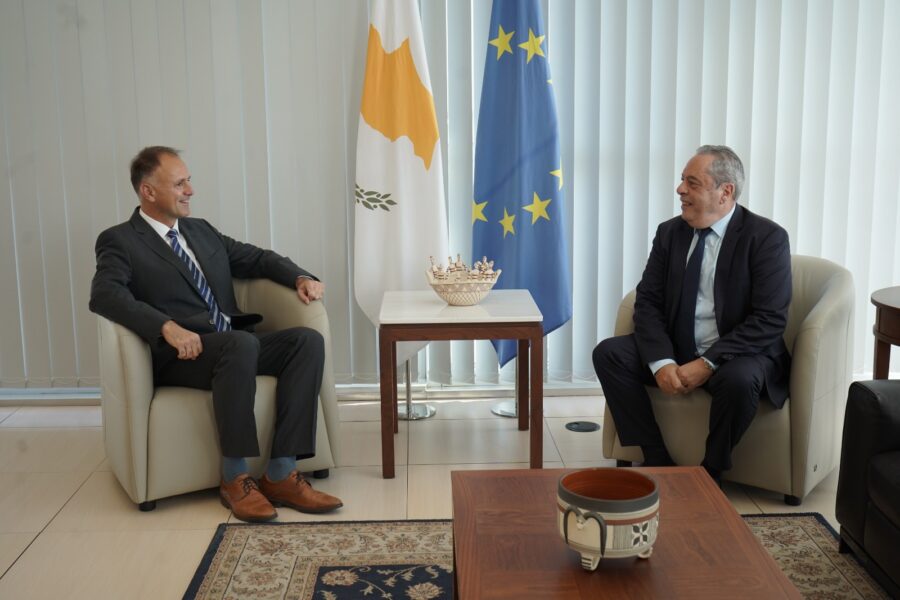 Ο Υπουργός Άμυνας, Βασίλης Πάλμας, συναντήθηκε την Πέμπτη 23 Οκτωβρίου, με τον Εκτελεστικό Διευθυντή του Ευρωπαϊκού Οργανισμού Άμυνας – ΕΟΑ (European Defence Agency – EDA), André DENK, ο οποίος πραγματοποιεί επίσημη επίσκεψη στην Κύπρο, από τις 22 έως τις 24 Οκτωβρίου 2025, στο πλαίσιο της πρόσφατης ανάληψης των καθηκόντων του, καθώς και των τακτικών επαφών του Οργανισμού με τα κράτη μέλη της Ευρωπαϊκής Ένωσης.