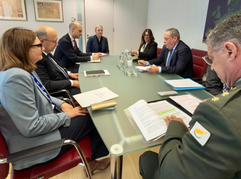 Επίσης, σύμφωνα με ανακοίνωση του ΥΠΑΜ, ο Υπουργός Άμυνας, Βασίλης Πάλμας, πραγματοποίησε στις 15 Οκτωβρίου στις ξεχωριστές συναντήσεις με την Ύπατη Εκπρόσωπο της Ευρωπαϊκής Ένωσης σε Θέματα Εξωτερικής Πολιτικής και Πολιτικής Ασφαλείας και Αντιπρόεδρο της Ευρωπαϊκής Επιτροπής κα Kaja Kallas, καθώς και με τον Επίτροπο Άμυνας και Διαστήματος της Ευρωπαϊκής Επιτροπής κ. Andrius Kubilius.